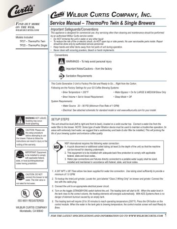 Curtis Thermopro Manual. By an authorized wilbur curtis service center. Wilbur curtis ready to brew 2 brewing instructions 1.