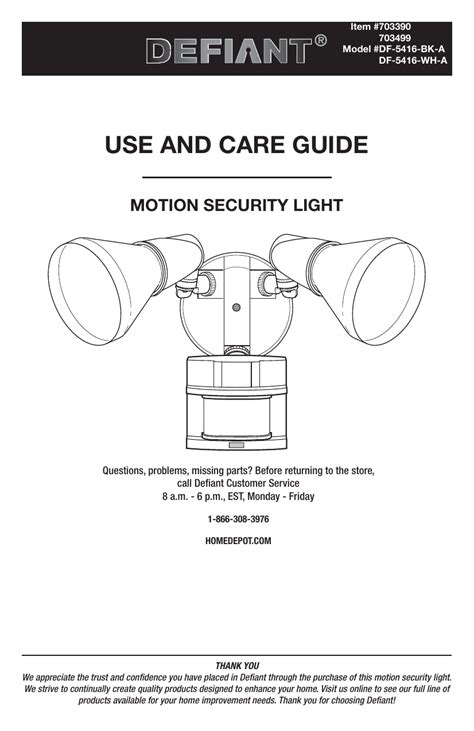 Defiant Motion Security Light Manual. Use and care guide motion security light questions, problems, missing parts?. Web view & download of more than 148 defiant pdf user manuals, service manuals, operating guides.