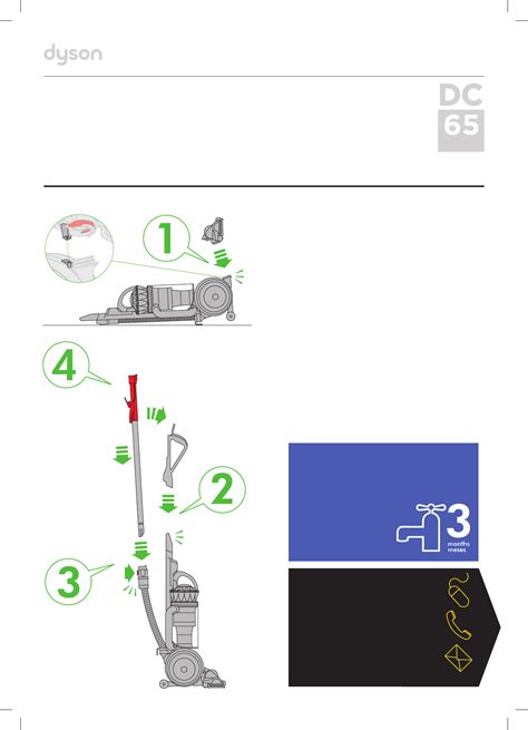 View the manual for the dyson dc65 animal complete here, for free. Each part has a 12 month warranty. Page 1 operating manual assembly click wash filters click wash filters with cold water at least every 3.