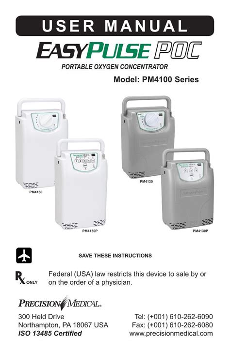 Page 1 u s e r m a n u a l portable oxygen concentrator model: Web preface precision medical, inc. View online or download precision medical easypulse pm4150 series user manual.