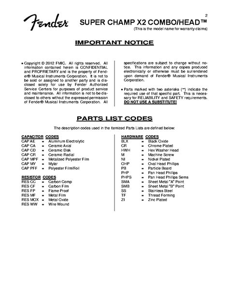 Fender Super Champ X2 Manual. Warranty service procedures the super champ x2 combo and head are considered to be field serviceable to the component. Fender super champ x2 head ;.