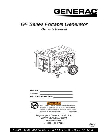Web Generac Gp8000E User Manual Generac Gp8000E Owners Guide.